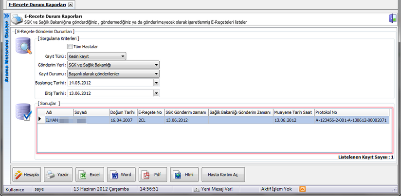 Reçete türü normal seçildiği halde diğer reçete türlerinde bir ilaç yazılırsa uyarı verilerek buna izin verilmeyecektir.